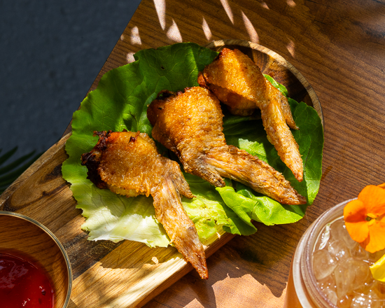 Ailes de poulet farcies délicatement marinées aux épices thaïlandaises, frites jusqu’à une peau croustillante révélant un cœur tendre et savoureux aux arômes parfumés.
